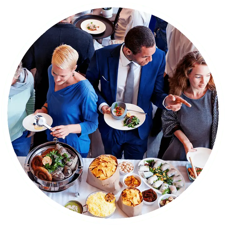 Nuestro equipo se encargará de seleccionar los mejores socios comerciales especializados en alimentos y bebidas con el mayor estándar de calidad y servicio para hacer de tu evento una experiencia única y satisfacer a todos tus invitados.